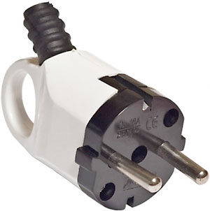 Вилка (з) угловая с ушком 16А белая "Универсал"