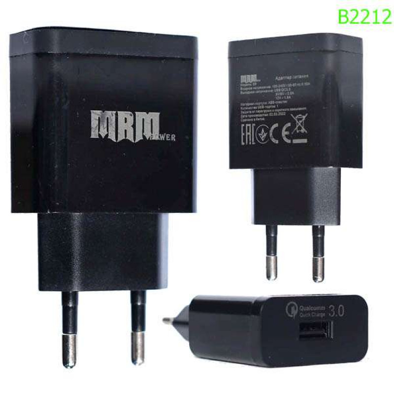 ОписаниеАдаптер 220 => 1*USB (без шнура) 5V 3,0A MRM S9 QC3.0 /B2212