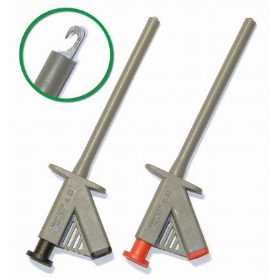 Зажимы для измерительных проводов - зажим: 165 х 49 мм - рабочая часть: тип "шприц-крючок" - электрическая прочность 1000 В/2 А коннектор: 4 мм, тип "мама", в изоляции, цвета зажимов: серый с черным